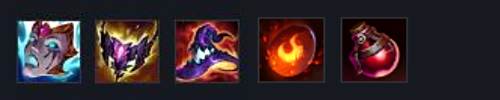 5、出装推荐:【兰德里的苦楚 影焰 灭世者的死亡之帽 法师之靴 焰爪猫幼崽 生命药水】