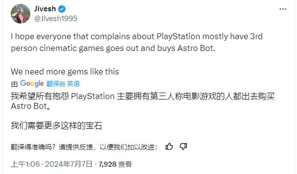 我希望所有抱怨PlayStation大多是第三人称电影游戏的人都去买《宇宙机器人》。我们需要更多类似这样的精品游戏。