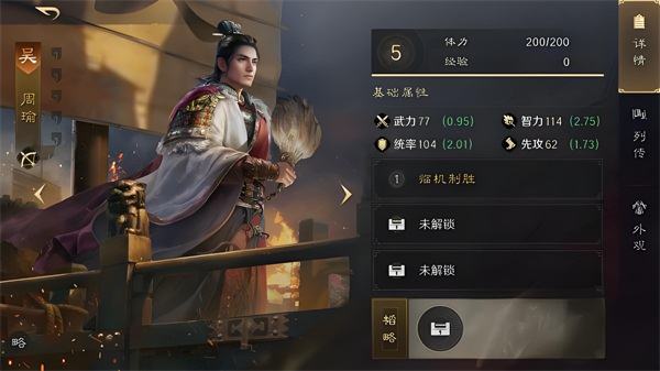 周瑜选择弩兵,兵种专精选择“釜底抽薪”:对敌军后排造成的伤害提升5%;