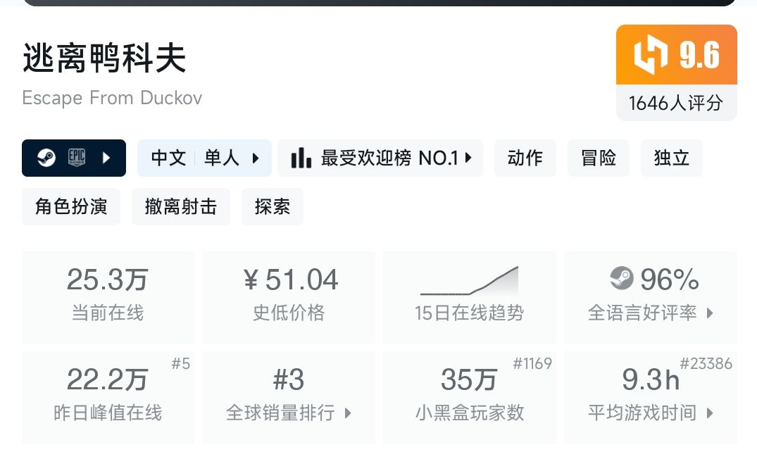在线峰值突破25万!《逃离鸭科夫》创国产独游PCU新纪录