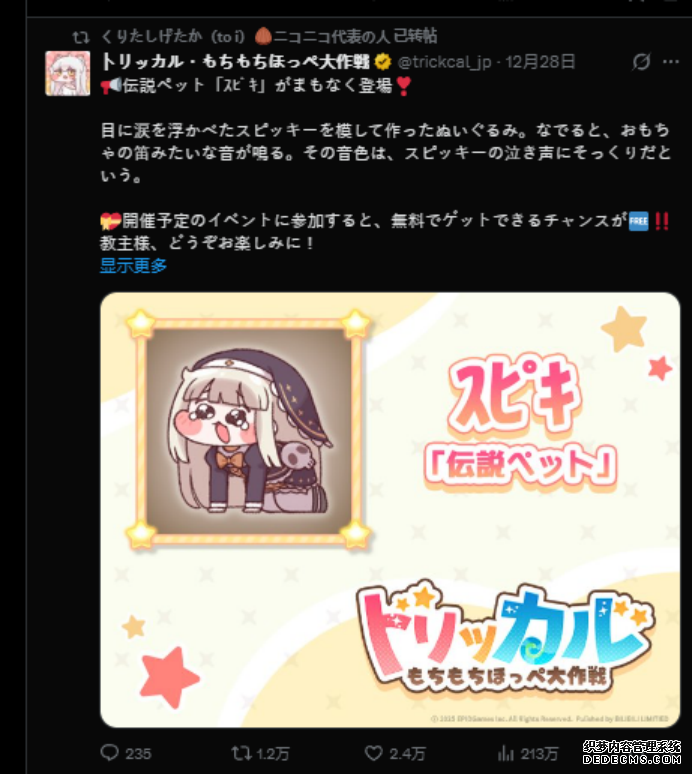 最后还是没抵挡住斯皮奇的诱惑,在X官宣下载trickcal。看来是要到游戏里补番去了。作为最强斯皮奇的非官方推广大使,每日在X更新自己的游玩进度和转发点赞官方动态。