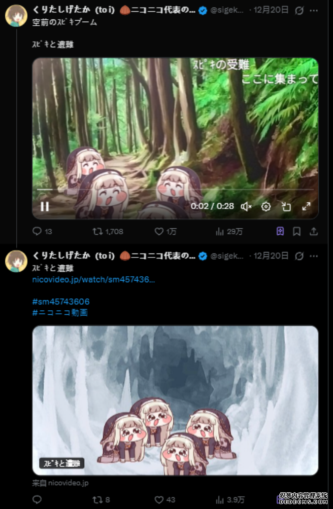 作为弹幕文化的发源地,无数鬼畜名梗诞生的圣地,niconico必然不可能缺席作为流量密码的斯皮奇很快被更多作者发现,并且在12月开启人传人模式