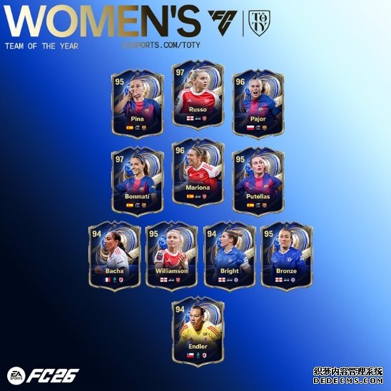 “当选 EA SPORTS FC 史上首位女足年度最佳阵容队长,我深感荣幸。” 效力于切尔西女足、同时也是英格兰女足右后卫的露西・布龙泽表示,“能得到球迷们的认可,对我意义非凡。2025 年是收获满满的一年 —— 我们成功卫冕欧锦赛冠军,我也随切尔西女足首次捧起英超女足超级联赛冠军奖杯。这份成功离不开球迷们的鼎力支持,很开心我的努力能得到大家的肯定。”
