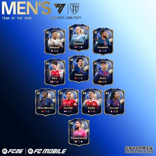 年度最佳阵容(TOTY)由 EA SPORTS FC 社区数百万玩家投票选出,始终为全球球迷提供发声平台 —— 这也是 EA SPORTS FC 对其社区及全球足球迷们承诺的延续。